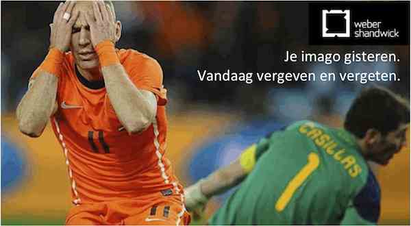 Het WK voetbal biedt volop inspiratie voor een zogenaamde inhaker. Opvallend daarbij is dat het vooral B2C bedrijven als Heineken, Jumbo en Albert Heijn zijn die daar – ondersteund met soms wel hele diepe zakken qua reclamebudget – creatief op inhaken. Stabilo is als pennenleverancier een mooi, ietwat hybride (B2C/B2B) voorbeeld, met deze, bijna kunstzinnige inhaker: