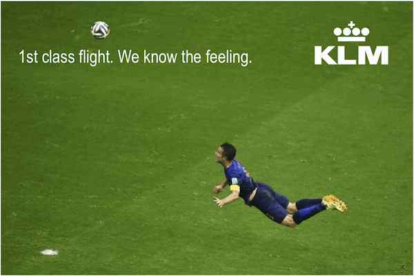 * deze 5 voorzetten zijn zonder de genoemde bedrijven tot stand gekomen en worden dus (nog) niet formeel toegejuicht of ‘endorsed’. Bij het ter perse gaan van deze blogpost had de KLM al wel heel sportief de foto op de KLM facebook pagina geplaatst. FocusOrange reageerde ook erg enthousiast via twitter: ‘This is phenomenal!’.